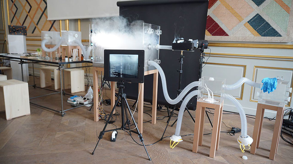 The gaseous, lively, mutable, oscillating, cloudy agent will impose its own rules, while being playfully transformed by heating, cooling, moisturising through a control system of the cloud machinery. Boundaries can be defined by setting the conditions for the vapour to appear, being organized and re-interpreted by a machine learning algorithm.
