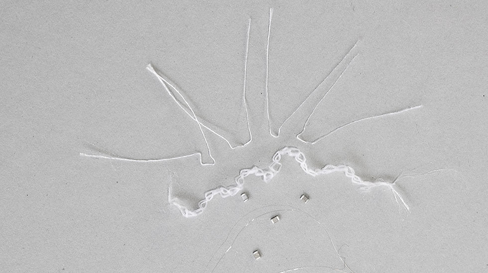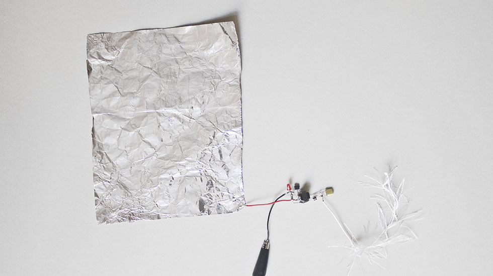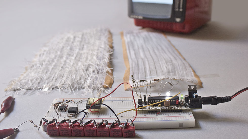 Besides other circuits amplifying subtle amounts of electricity around our human bodies, I wanted to create a material device, which has much more in common with the "body electric" than circuitry. This textile has been designed as an antenna, that responds in an abstract way to our electrically charged surroundings and which creates this tingling feeling by little electric discharges to the body.