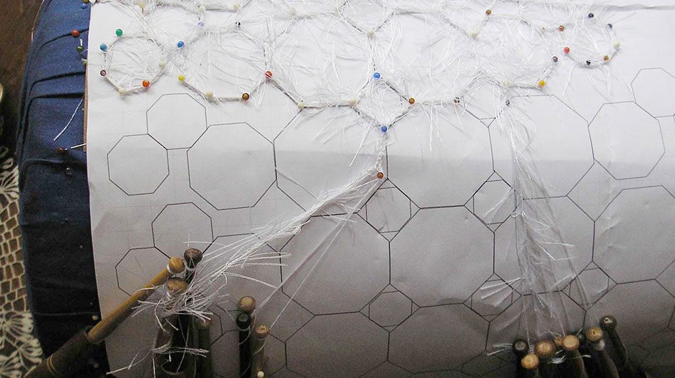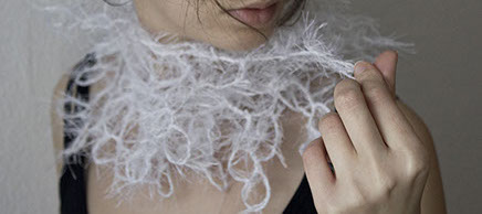 I have created a loose textile by lace-making, that functions as an antenna or capacitor sandwiching conductive and non-conductive structures as well as generating a visual and tactile expression. Electricity gets perceivable by moving the textile hair and tiny electric shocks over time. The hair stands on end like in the hysteria of history or today´s news about the so-called electric smog.